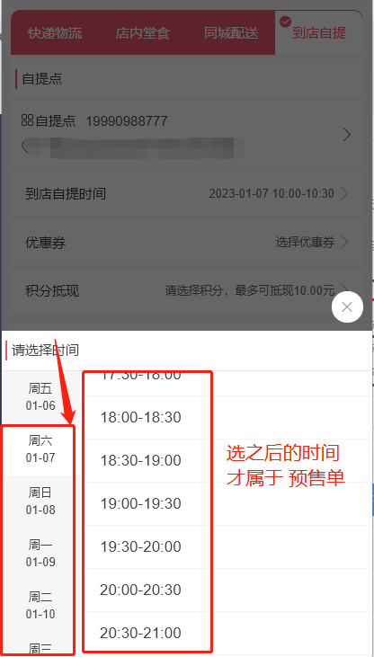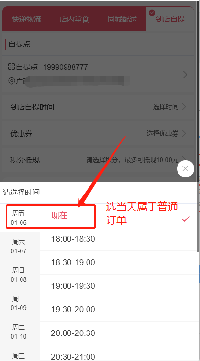 3.顾客下单的时候 如果选择自提或配送的当天时间 属于普通订单