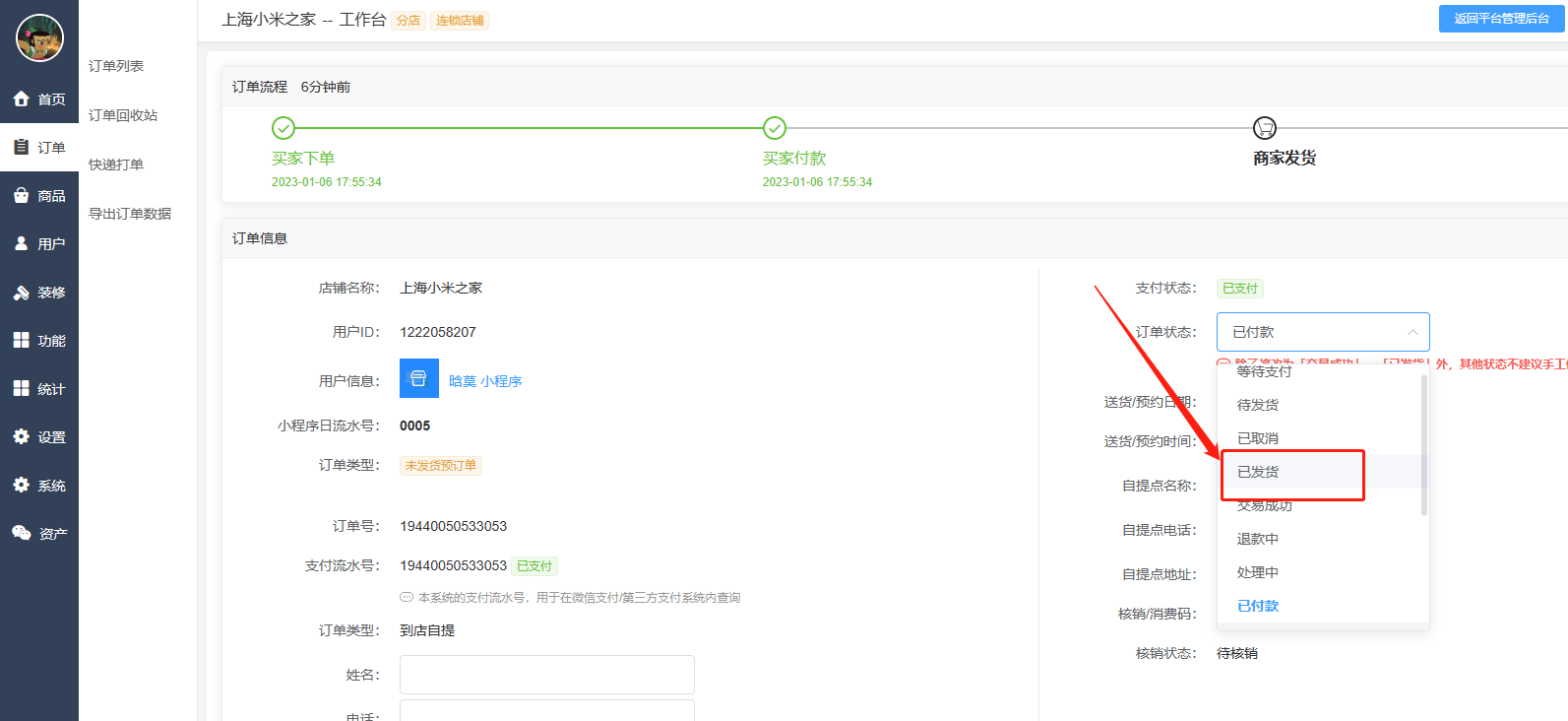 7.注意:绑定客如云 预售单顾客下单后 订单不会推送到收银机 需要修改订单状态为 已发货 订单才会推送!!!